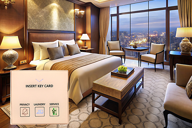 Set ambiance for check-in, housekeeping, or do-not-disturb with a single touch.